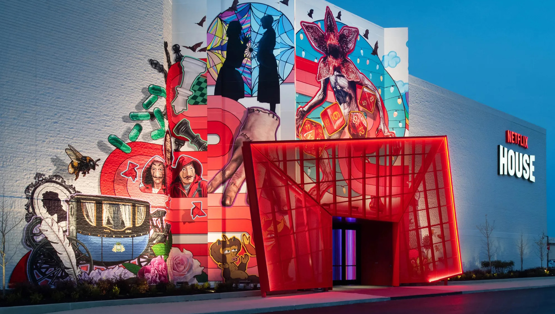 Netflix House is a chain of large-format experiential venues where fans can step into worlds from hit shows like Stranger Things, Squid Game, Wednesday, and One Piece. Visitors interact through games, attractions, food, and branded retail. Each location, roughly 100,000 square feet, has opened in repurposed department store spaces such as King of Prussia near Philadelphia and Galleria Dallas.